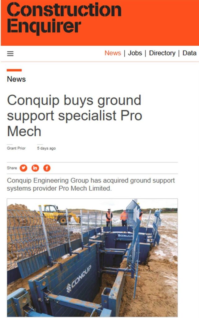 Multiple news outlets have reported on Conquip’s recent acquisition of Pro Mech, highlighting how this move will enhance the customer experience by improving our technical excavation support services in the UK market.