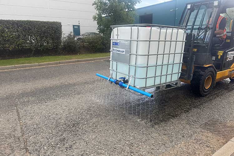 A common, cost-effective method for dust suppression is the use of an IBC fitted with a spray bar. However, this setup has a limited spray range and reduced overall effectiveness.