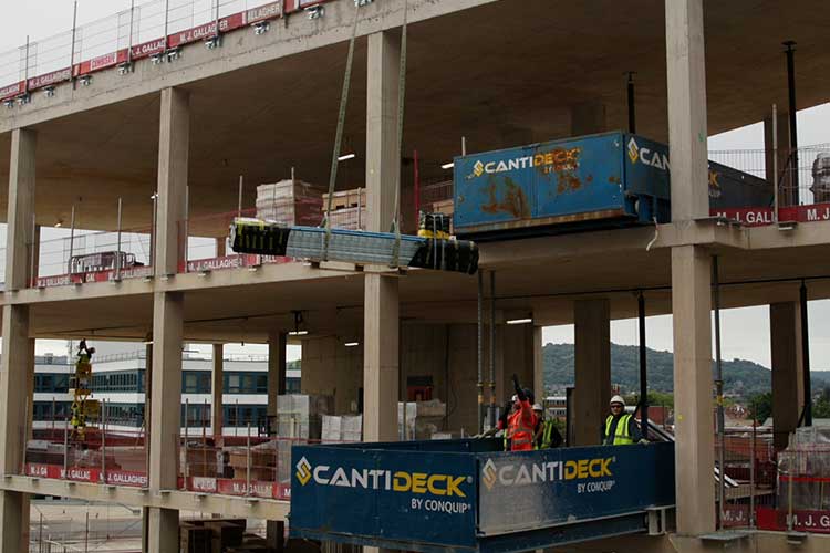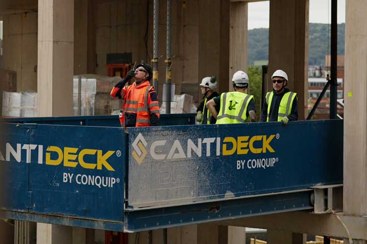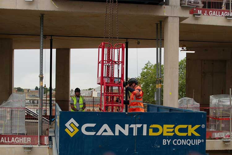 “CantiDecks allow for a multitude of deliveries to be put into the building, once, and once only. Installing a CantiDeck is very simple, it’s a day’s training by a Conquip engineer….you can then install a CantiDeck within two hours….I would recommend these to any main contractors or sub-contractors who are looking to build a project on time, and efficiently.”