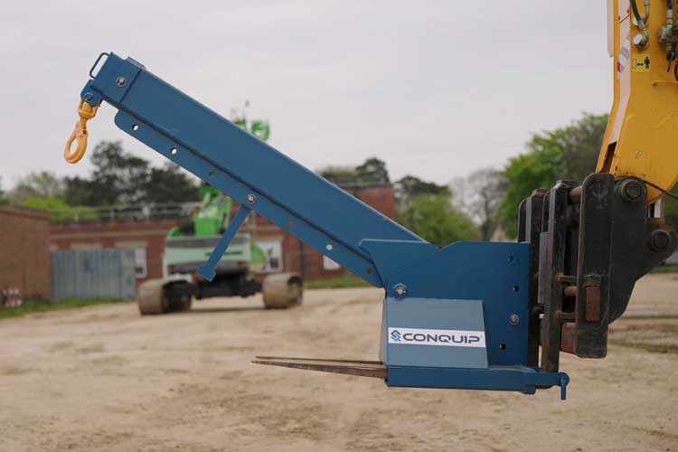 • A forklift attachment that is a crane mounted extending jib, converting a forklift into a long reach mobile crane