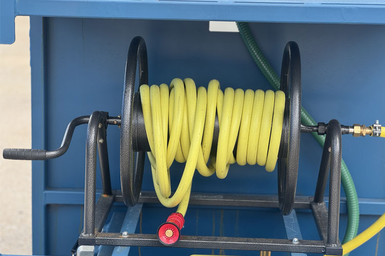The unit can be transported around site on a telehandler or on the back of a truck using the sprinkler system to suppress dust, or it can be moved to any location on-site to function as a water source for cleaning equipment or other uses.