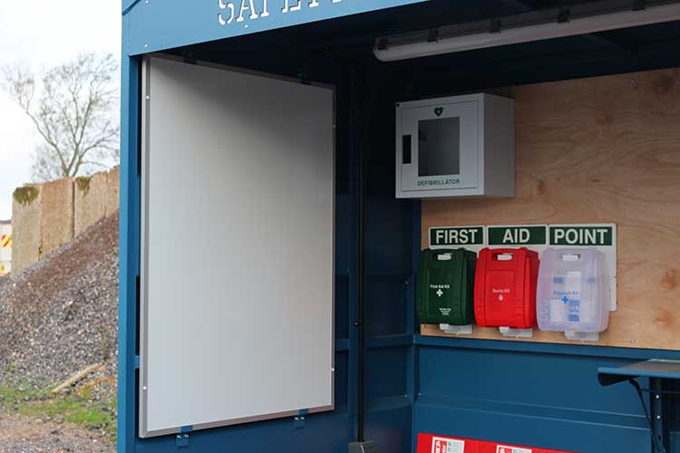 The Conquip Safety Station a robust, weather-proof steel frame designed to enhance workplace safety and efficiency. It provides site teams with a central hub for first aid support, essential safety information, emergency contacts, sheltered briefing meetings, and personnel welfare. The base unit includes a whiteboard, a pinboard and a fold-down shelf and can be customised with a wide range of optional extras to suit site-specific requirements.