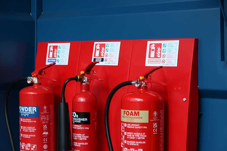 • Fire extinguishers (Foam, CO2, Powder)
