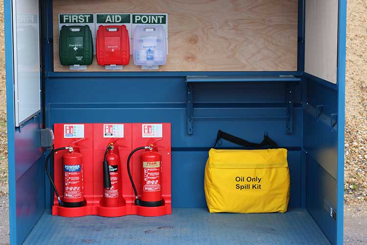 • Optional extras include: fire extinguishers and bins, maintenance spill kit, first aid kits, defibrillator cabinet, internal lighting and additional boards.